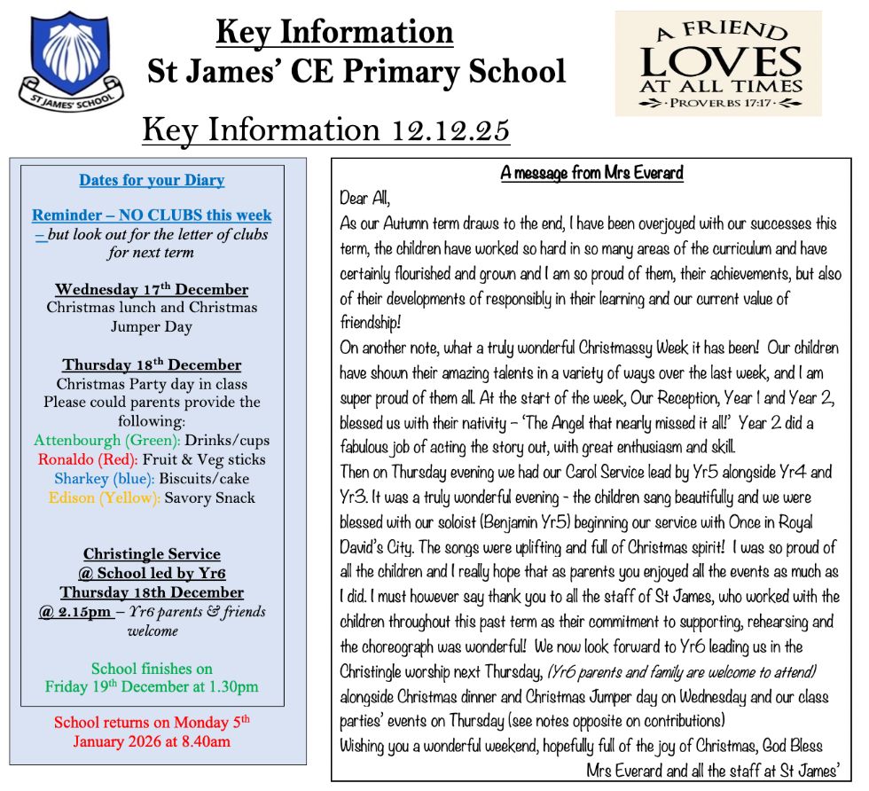 If you are considering St James’ as the school for your child or children please visit the 'our school' section of our website, and call to arrange a visit.