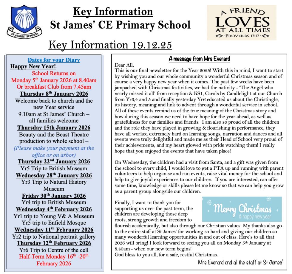 If you are considering St James’ as the school for your child or children please visit the 'our school' section of our website, and call to arrange a visit.